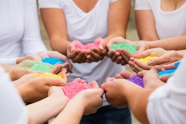 加德满都的杜巴广场上,无论是当地人还是外国游客,脸上身上都洒抹着五颜六色的粉末。人们随着强劲的音乐跳起欢快的舞蹈,怒放的笑脸,陶醉的表情,挥舞的双手。还不时向空中抛洒着红黄色的颜料。这便是尼泊尔加德满都洒红节的现场,犹如一场最疯狂的color party。参与进这一场热闹的“混战”吧。那种情不自禁的欢笑和放松,犹如回到儿童时代,不用顾忌整洁干净,要的就是调皮捣蛋。最好换上一件白色T恤,染上颜色后分外好看,还可以抹点水创造各种颜色的手印。这是最好的纪念品。