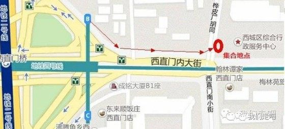 地铁西直门站B口出东行100米第一个红绿灯东北侧,找队旗
